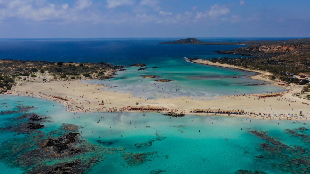 The Lagoon of Chania that looks like an exotic island, covered with white sand with pink shades and blue waters. Elfonisi is the beach you should definitely visit. The small island is protected by the Natura 2000 network because of the sand dunes and over 100 rare plants, such as sea lilies. The tiny pink shells on the sand, the shallow turquoise waters and the small coves take every visitor’s breath away, who arrive from all over Crete to see the scenery up close and enjoy the waters.